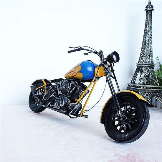 送料無料 特大 メタル ブリキ玩具 オートバイ アメリカンバイク ハーレー 黄色 イエロー 人気 おしゃれ インテリア ディスプレイ 輸入雑貨