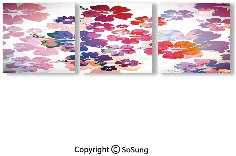 木枠付き 3枚組 壁掛け キャンバス ハイビスカス 花柄 ピンク パープル レッド オレンジ ハワイ インテリア ディスプレイ アート 輸入雑貨