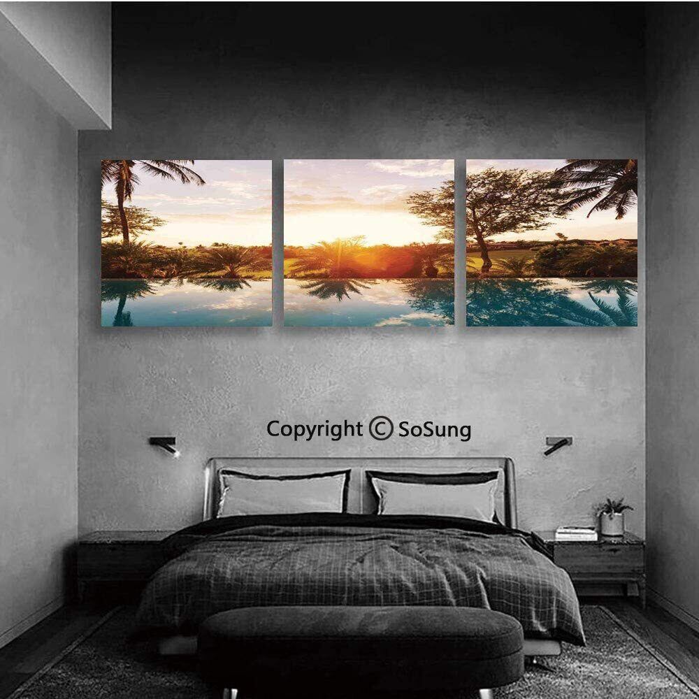木枠付き 3枚組 壁掛け キャンバス サンセット ヤシの木 プライベートヴィラ リゾート プール インテリア ディスプレイ アート 輸入雑貨