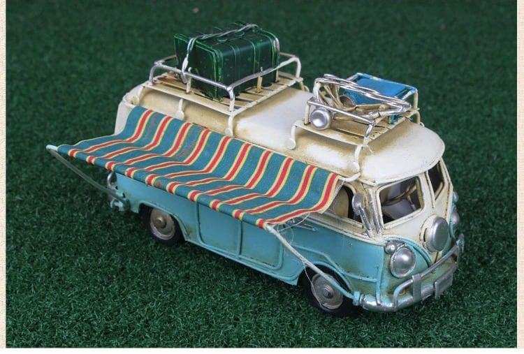 送料無料 メタルブリキ玩具 レトロ キャンパーバン ワーゲンバス 青 水色 ブルー インテリア ディスプレイ コレクション 輸入雑貨 おしゃれ