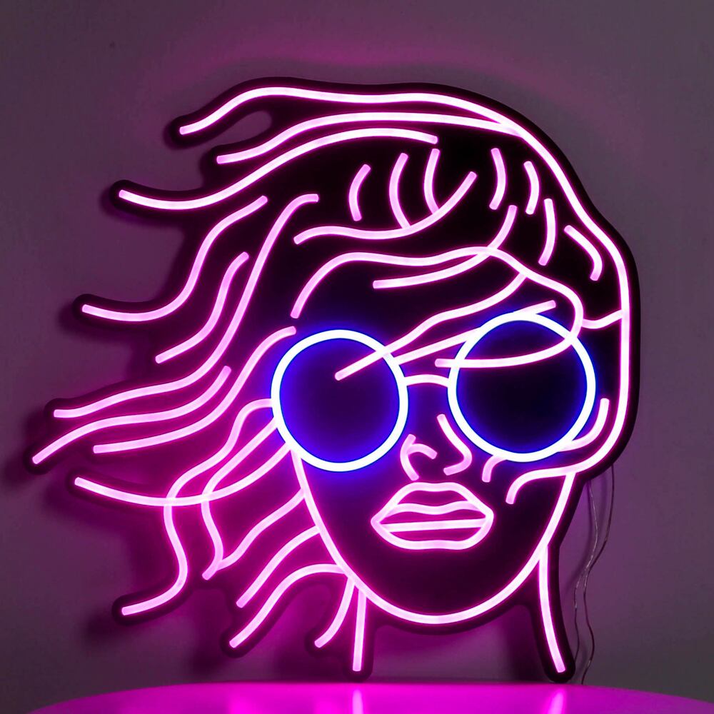 送料無料 特大 LEDライト ネオンサイン セクシー美女 サングラス女子 クール女子 人気 おしゃれ エコ インテリア ディスプレイ 輸入雑貨
