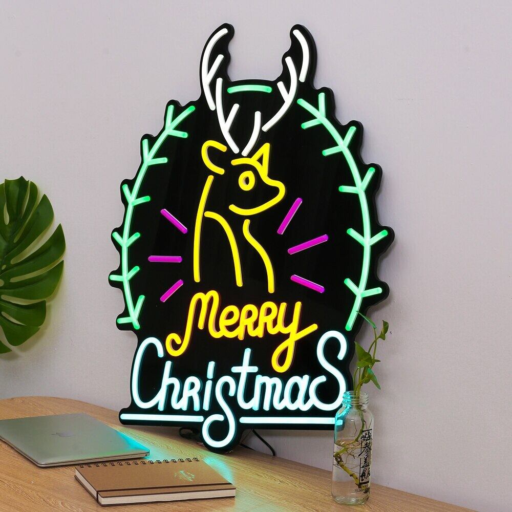 送料無料 特大 LEDライト ネオンサイン メリークリスマス Reindeer トナカイ カリブー おしゃれ エコ インテリア ディスプレイ 輸入雑貨