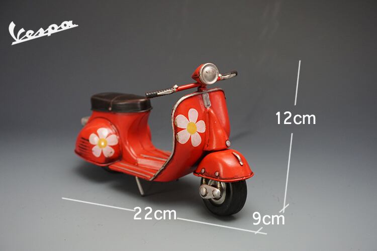 送料無料 特大 メタル ブリキ玩具 オートバイ バイク スクーター ベスパ 花柄 赤 レッド コレクション インテリア ディスプレイ 輸入雑貨