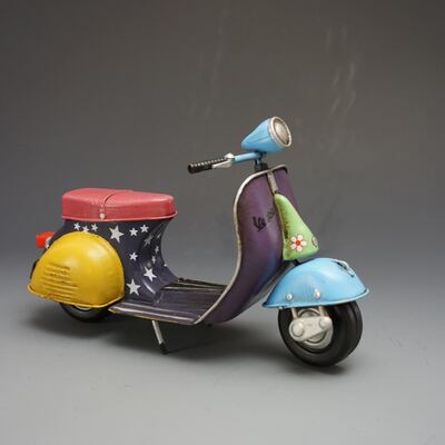送料無料 メタル ブリキ玩具 オートバイ バイク スクーター ベスパ 花柄 星 スター カラフル レインボー インテリア ディスプレイ 輸入雑貨