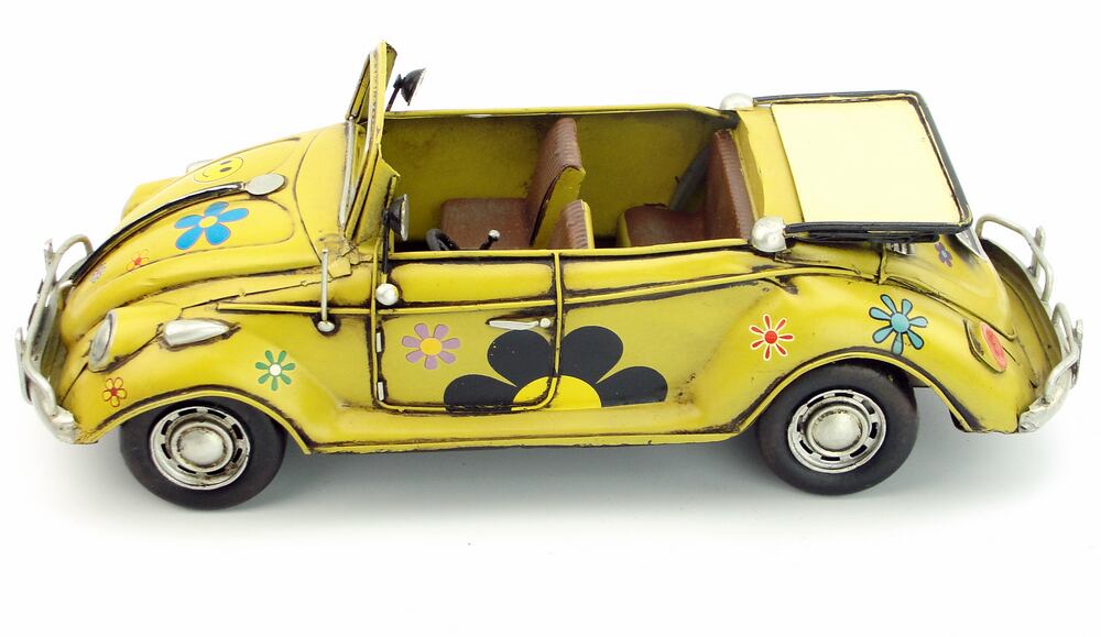 特大 メタル ブリキ玩具 フォルクスワーゲン ビートル カブリオレ レトロ クラシックカー 黄色 イエロー ヒッピー インテリア ディスプレイ
