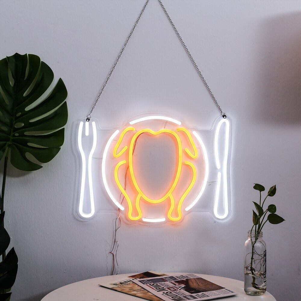 特大 LEDライト ネオンサイン 看板 ローストチキン Roast chicken 七面鳥 フォーク ナイフ クリスマス インテリア ディスプレイ 輸入雑貨