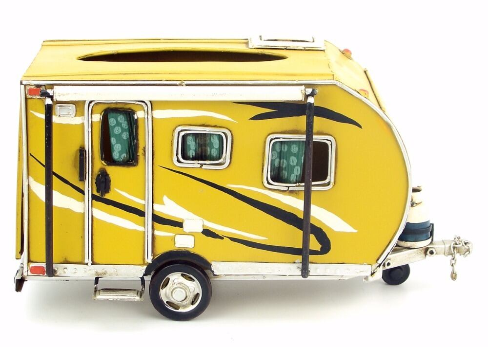特大 メタル ブリキ玩具 ティッシュケース キャンピングトレーラー キャンピングカー 黄色 イエロー インテリア ディスプレイ 輸入雑貨