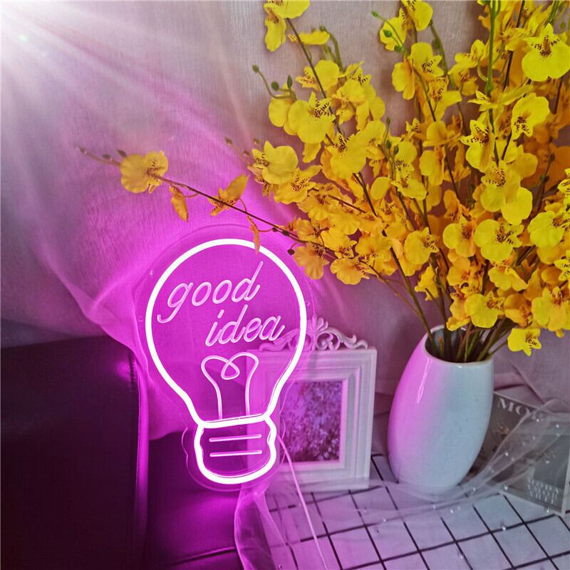 LEDライト ネオンサイン 看板 バルブ 電球 good idea アイデア 閃き ピンク インテリア ディスプレイ 輸入雑貨 エコ おしゃれ アート 人気