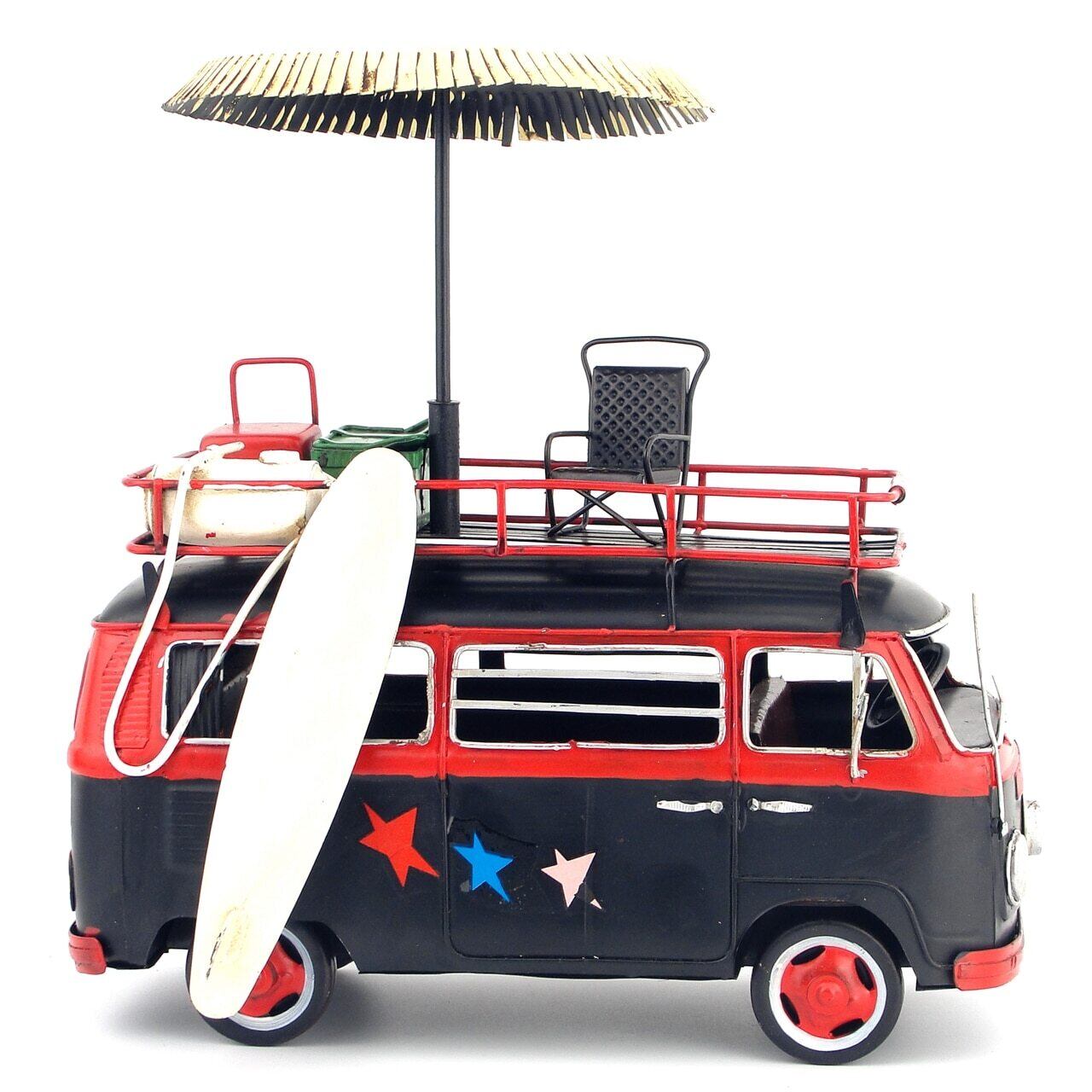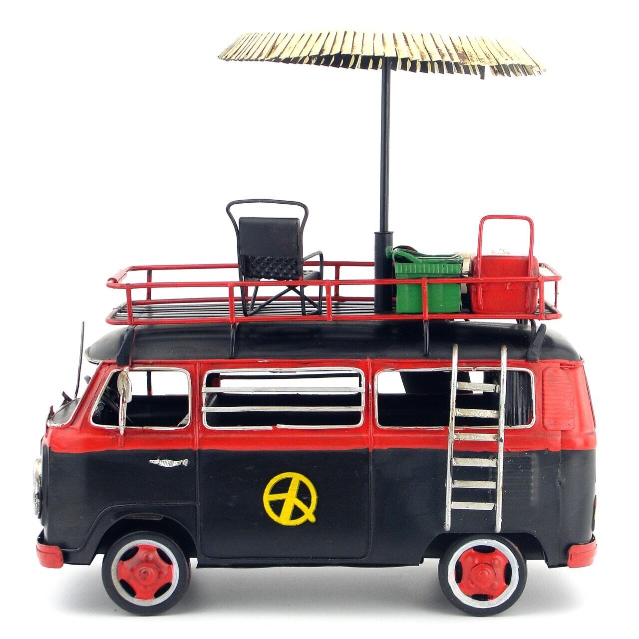 特大 メタル ブリキ玩具 キャンパーバン ワーゲンバス キャンプ サーフボード 黒 ブラック インテリア ディスプレイ コレクション おしゃれ
