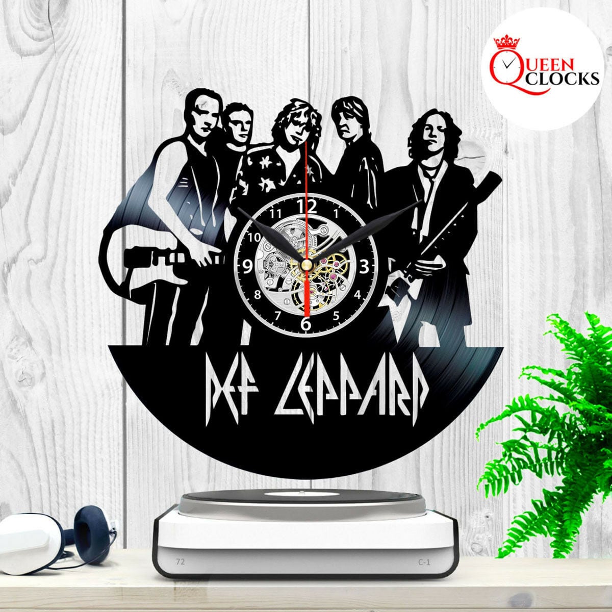 30cm レコード盤 壁掛け時計 デフレパード Def Leppard イングランド ロックバンド イギリス UK エコ アート 輸入雑貨 プレゼント おしゃれ