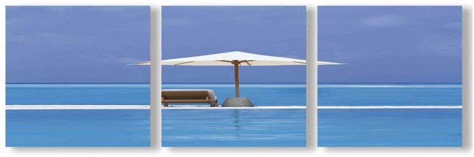 木枠付き 3枚組 壁掛け キャンバス アートパネル 海 砂浜 ビーチ チェア ソファ パラソル レジャー リゾート バカンス 無人島 輸入雑貨