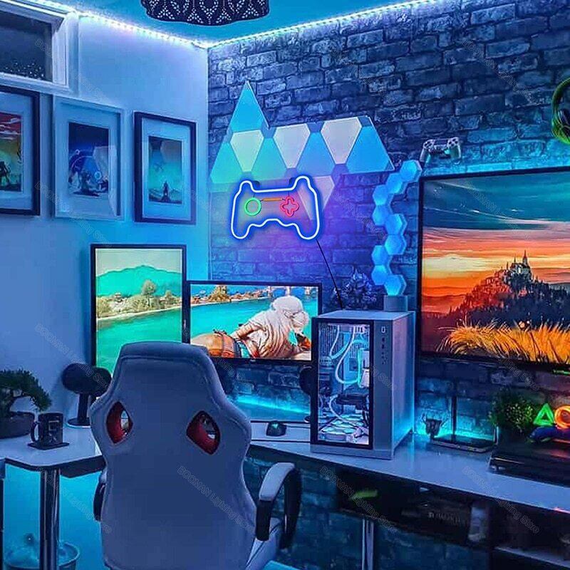 LEDライト ネオンサイン 看板 ゲーム コントローラー eスポーツ 青 ブルー 人気 おしゃれ エコ ディスプレイ アート 輸入雑貨 USB プレゼント ギフト