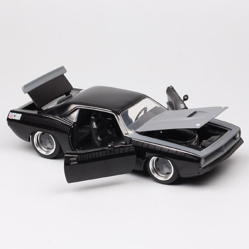 1/24 1973 Plymouth Barracuda プリムス バラクーダ ワイスピ 黒 ブラック 灰色 グレー ミニカー ダイキャストカー モデルカー コレクション インテリア ディスプレイ 人気