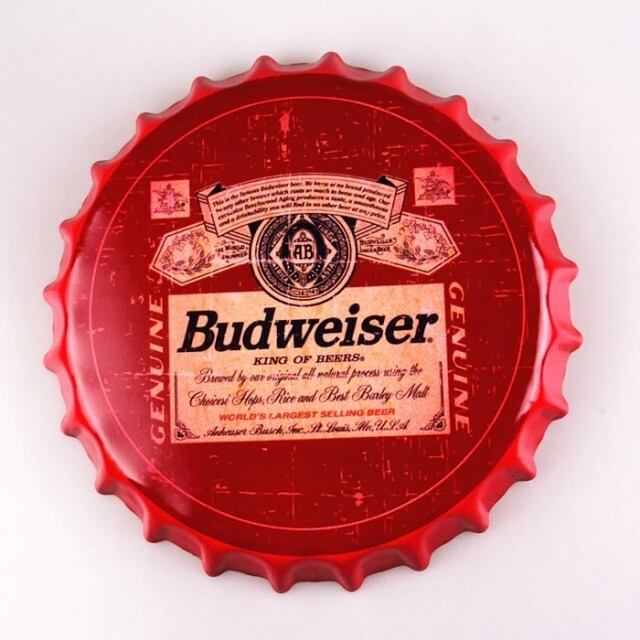 ボトルキャップ型 メタルサイン ブリキ 看板 バドワイザー Budweiser ビール Beer レトロ インテリア ディスプレイ Bar Club Pub 輸入雑貨 おしゃれ アート