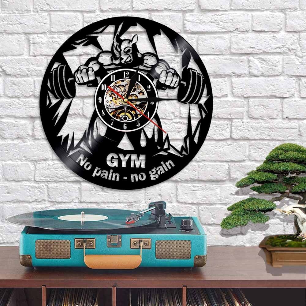 30cm レコード盤 壁掛け時計 GYM ジム No Pain No Gain 筋肉 マッスル マッチョ エクササイズ フィットネス ワークアウト 筋トレ セクシー 人気 おしゃれ エコ インテリア ディスプレイ プレゼント ギフト アート シルエット 輸入雑貨 日本未発売