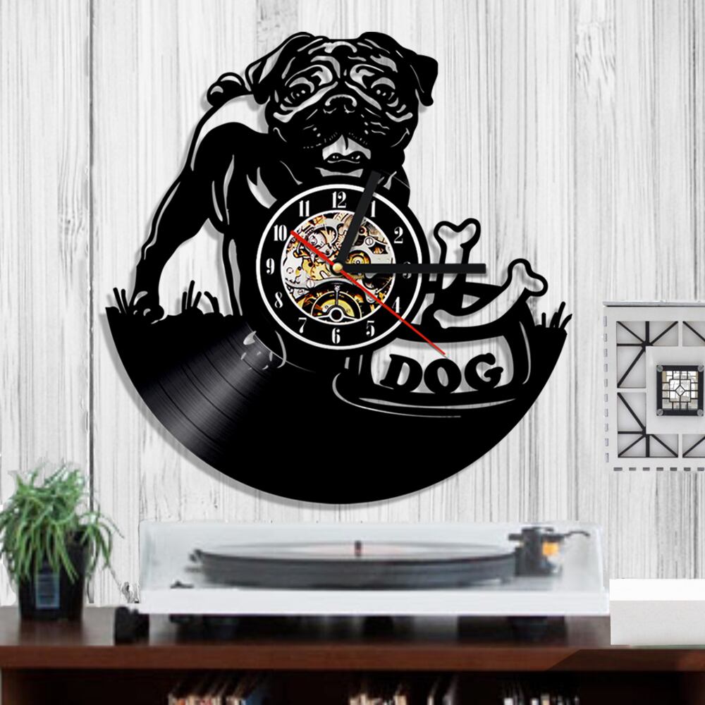 30cm レコード盤 壁掛け時計 パグ Pug ぶさかわ 犬 dog 犬種 小型犬 愛犬 ペット 家族 人気 おしゃれ エコ インテリア ディスプレイ プレゼント ギフト アート シルエット 輸入雑貨 日本未発売