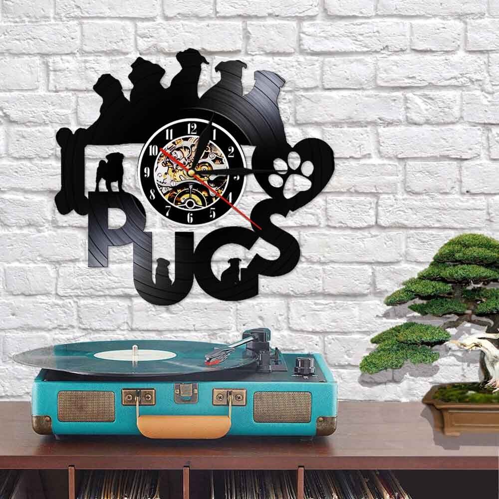 30cm レコード盤 壁掛け時計 I Love Pugs パグ Pug ぶさかわ 犬 dog 犬種 小型犬 愛犬 ペット 家族 人気 おしゃれ エコ インテリア ディスプレイ プレゼント ギフト アート シルエット 輸入雑貨 日本未発売