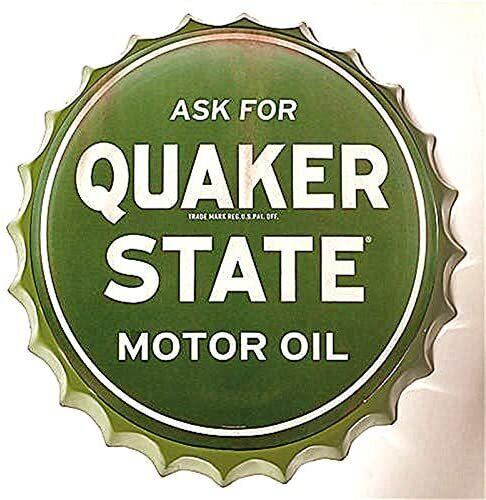 ボトルキャップ型 メタルサイン ブリキ 看板 QUAKER STATE クエーカーステート アメリカ USA オイル ガソリン インテリア ディスプレイ コレクション Bar Pub Club ガレージ 輸入雑貨 おしゃれ アート 人気 日本未発売 レトロ