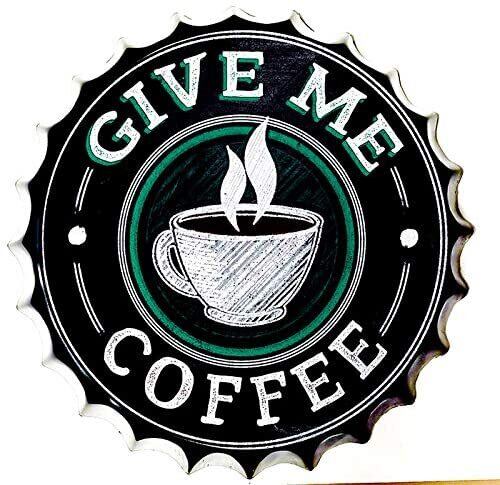 ボトルキャップ型 メタルサイン ブリキ 看板 コーヒー GIVE ME COFFEE Wi-Fi カフェ 喫茶店 インターネット インテリア ディスプレイ コレクション Bar Pub Club ガレージ 秘密基地 隠れ家 輸入雑貨 おしゃれ アート 人気 日本未発売 レトロ 限定