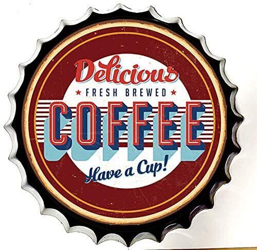 ボトルキャップ型 メタルサイン ブリキ 看板 コーヒー Delicious COFFEE Wi-Fi カフェ 喫茶店 インターネット インテリア ディスプレイ コレクション Bar Pub Club ガレージ 秘密基地 隠れ家 輸入雑貨 おしゃれ アート 人気 日本未発売 レトロ 限定