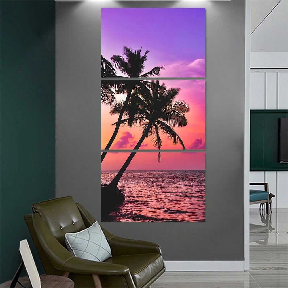 木枠付き 3枚組 壁掛け キャンバス アートパネル 海 ビーチ 砂浜 ヤシの木 ハワイ 南国 リゾート バカンス ハネムーン サンセット 夕日 夕陽 シルエット 輸入雑貨 おしゃれ 人気 インテリア ディスプレイ プレゼント ギフト 日本未発売 限定