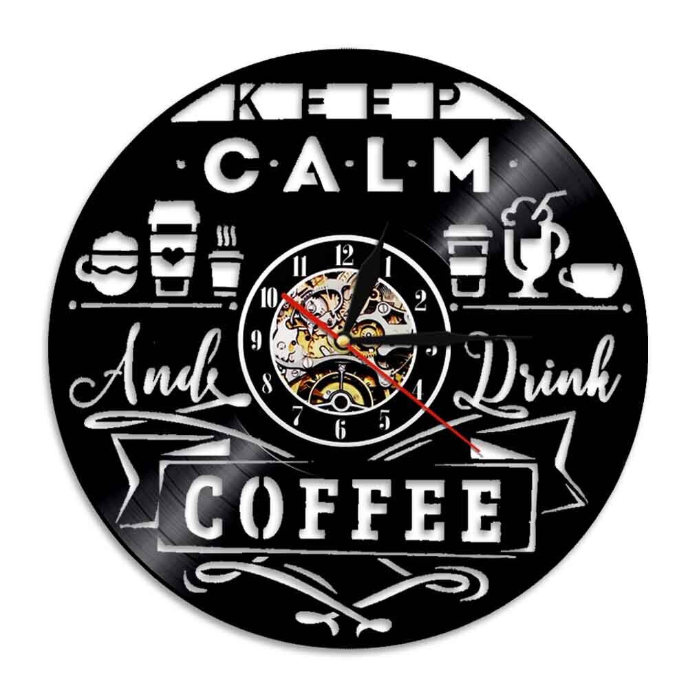30cm レコード盤 壁掛け時計 KEEP CALM COFFEE コーヒーショップ カフェ 喫茶店 Cafe スタバ サードプレイス 人気 おしゃれ エコ インテリア ディスプレイ コレクション プレゼント ギフト アート シルエット 輸入雑貨 日本未発売 限定