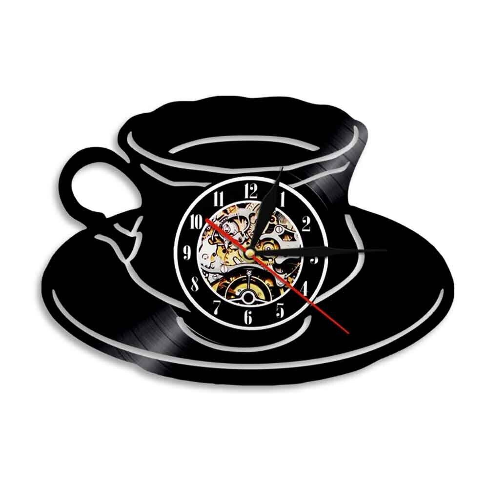 30cm レコード盤 壁掛け時計 コーヒーカップ マグカップ COFFEE コーヒーショップ カフェ 喫茶店 Cafe スタバ サードプレイス 人気 おしゃれ エコ インテリア ディスプレイ コレクション プレゼント ギフト アート シルエット 輸入雑貨 日本未発売 限定
