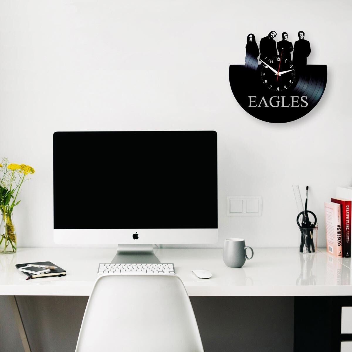 30cm レコード盤 壁掛け時計 イーグルス Eagles アメリカ合衆国 USA ロックバンド ミュージシャン アーティスト 人気 おしゃれ エコ インテリア ディスプレイ コレクション プレゼント ギフト アート シルエット 輸入雑貨 日本未発売 限定