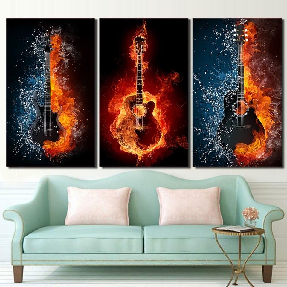 木枠付き 3枚組 壁掛け キャンバス アートパネル ギター アコースティックギター アコギ エレクトリックギター エレキギター エレキ 火 炎 Fire Music Guitar Burning シルエット 輸入雑貨 おしゃれ 人気 インテリア ディスプレイ プレゼント ギフト 日本未発売 限定 ホテル ヴィラ モデルハウス モデルルーム 不動産 スタジオ 音楽スタジオ