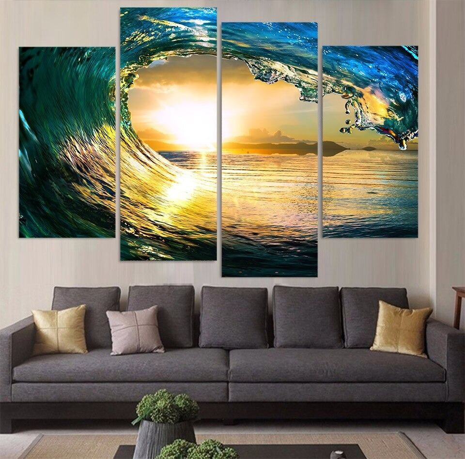 木枠付き 4枚組 壁掛け キャンバス アートパネル 海 ビーチ 波 Ocean Beach 空 雲 砂浜 ヤシの木 ハワイ 南の島 南国 リゾート バカンス ハネムーン サンライズ サンセット 朝日 朝陽 夕日 夕陽 空 雲 水平線 シルエット 輸入雑貨 おしゃれ 人気 インテリア ディスプレイ プレゼント ギフト 日本未発売 限定