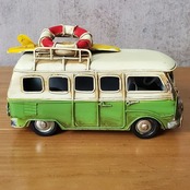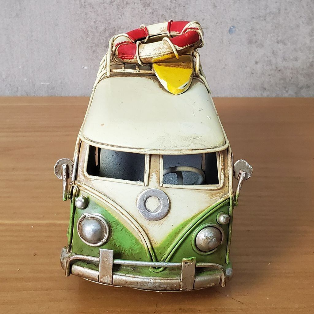 ブリキ玩具 メタル キャンパーバン ワーゲンバス サンババス デリバン Transporter T1 T2 白 ホワイト 緑 グリーン ライトグリーン 浮き輪 サーフボード Travel 旅行 旅 キャンプ 海 ビーチ レトロ インテリア ディスプレイ 輸入雑貨 おしゃれ アート 人気 日本未発売 プレゼント ギフト コレクション 限定 置物 オブジェ