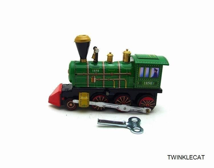 ブリキ玩具 メタル 電車 汽車 列車 鉄道車両 客車 貨車 機関車 蒸気機関車 SL 緑 グリーン 昭和 レトロ ブリキ おもちゃ ゼンマイ式 インテリア ディスプレイ 輸入雑貨 おしゃれ アート 人気 日本未発売 プレゼント ギフト コレクション 限定 置物 オブジェ ホテル モデルルーム モデルハウス 不動産