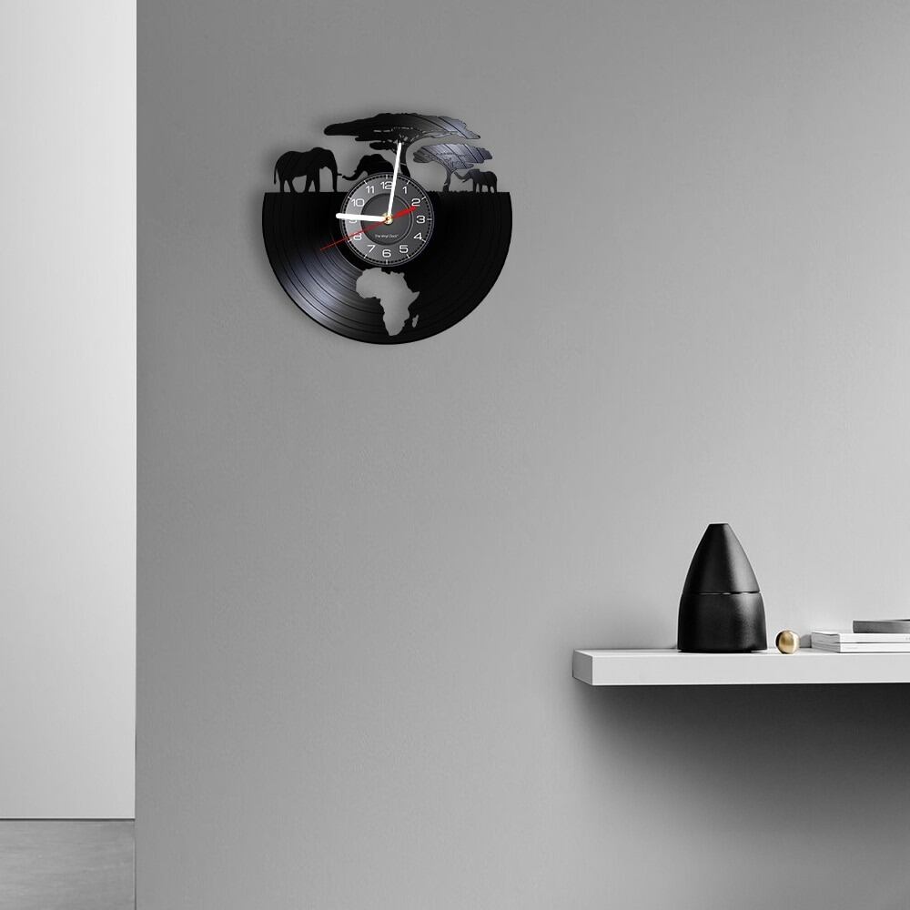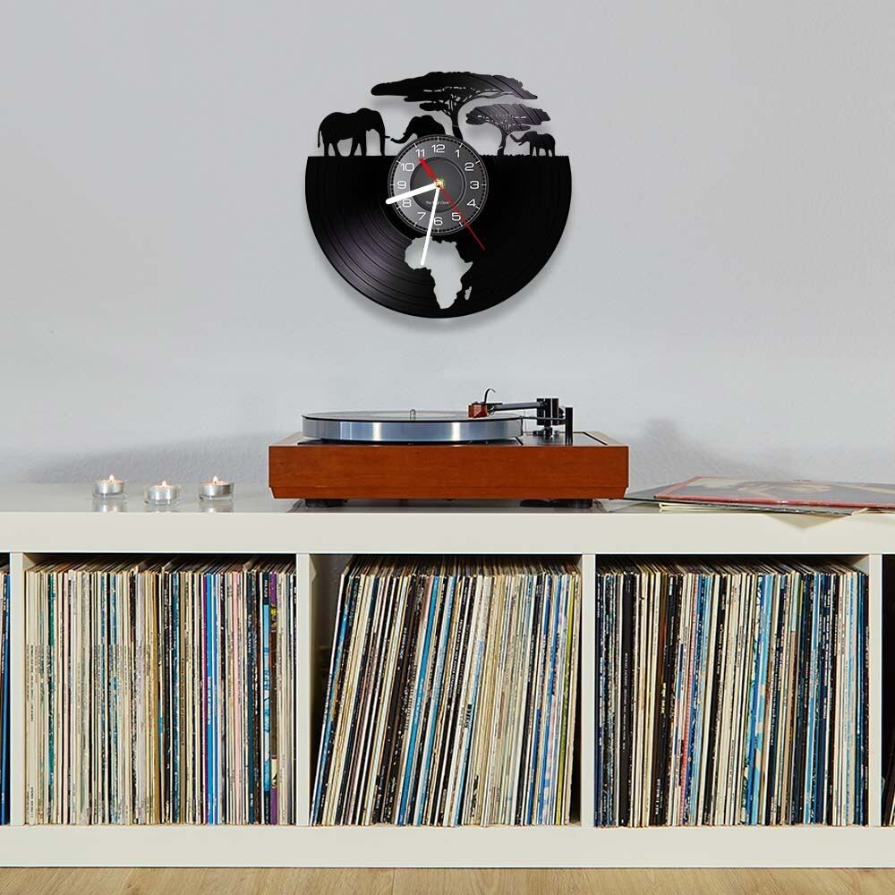 30cm レコード盤 壁掛け時計 Wall Clock アフリカ Africa Afrika アフリカ大陸 サバンナ 自然 民族 動物 ゾウ Elephant 親子 人気 おしゃれ エコ インテリア ディスプレイ コレクション プレゼント ギフト アート シルエット 輸入雑貨 日本未発売 限定