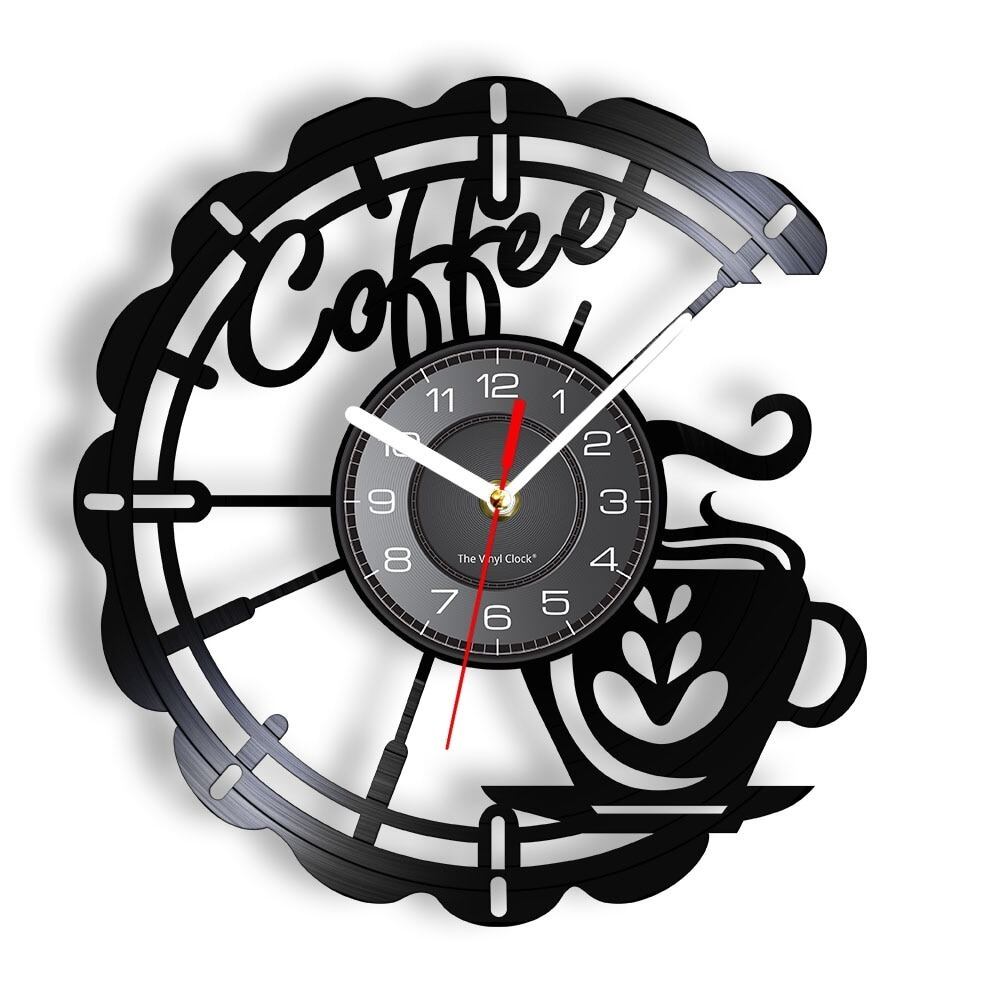 30cm レコード盤 壁掛け時計 Record Wall Clock コーヒー Coffee コーヒーカップ マグカップ beans コーヒー豆 コーヒーショップ カフェ 喫茶店 Cafe スタバ サードプレイス 人気 おしゃれ エコ インテリア ディスプレイ コレクション プレゼント ギフト アート Art シルエット 輸入雑貨 日本未発売 限定 SDGS