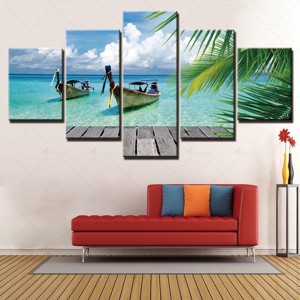 木枠付き 5枚組 壁掛け キャンバス アートパネル 船 Vessel Boat Ship 海 ビーチ Beach 砂浜 水平線 ヤシの木 Palm Tree 朝日 朝陽 太陽 空 青空 夕日 夕陽 輸入雑貨 おしゃれ 人気 インテリア ディスプレイ プレゼント ギフト 日本未発売 限定 リゾート ホテル Hotel ヴィラ モデルハウス モデルルーム Bar Club 隠れ家 秘密基地 お祝い 新築祝い アート Art
