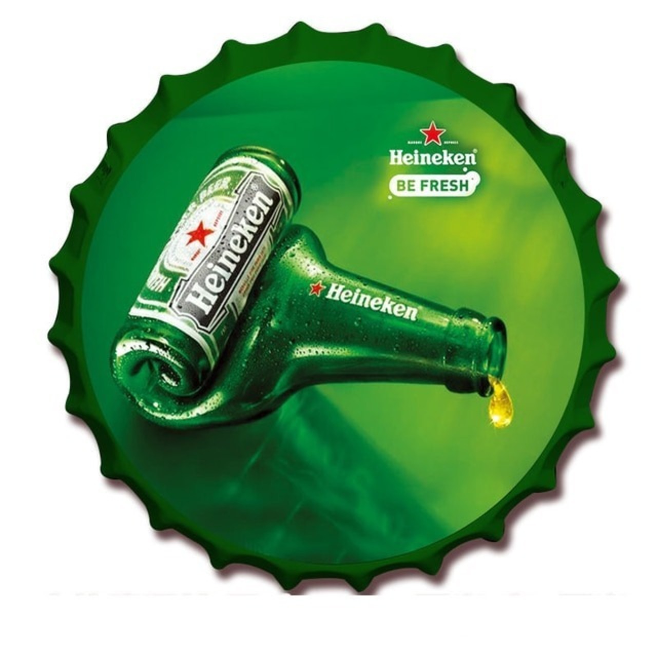 ボトルキャップ型 メタルサイン メタル看板 ブリキ看板 看板 ハイネケン Heineken オランダビール ビール Beer 瓶ビール インテリア ディスプレイ コレクション Bar Pub Club ガレージ 輸入雑貨 おしゃれ アート 人気 日本未発売 レトロ