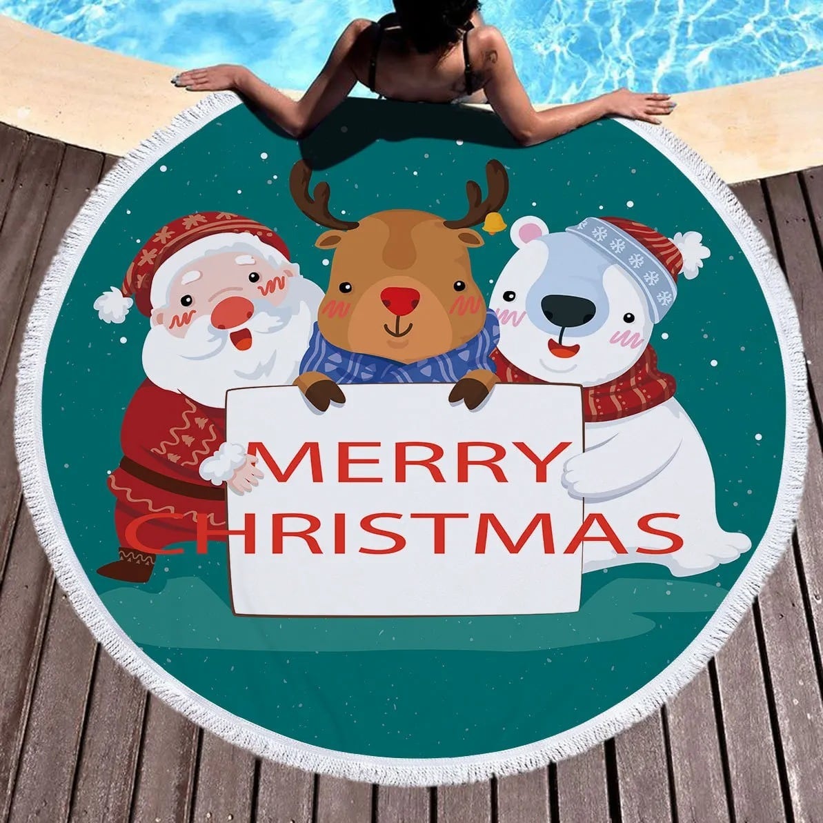 ラウンド ビーチタオル フロアマット ドアマット 玄関マット キッチンマット バスマット メリークリスマス Merry Christmas サンタクロース トナカイ 白クマ クリスマスツリー イルミネーション デコレーション オーナメント 飾り リゾート バカンス ハネムーン 海外 輸入雑貨 日本未発売 おしゃれ インテリア 人気 ディスプレイ 限定 プレゼント ギフト 贈り物 お祝い 新築祝い ホテル モデルハウス モデルルーム レストラン カフェ BAR PUB パーティー 隠れ家 秘密基地 アート