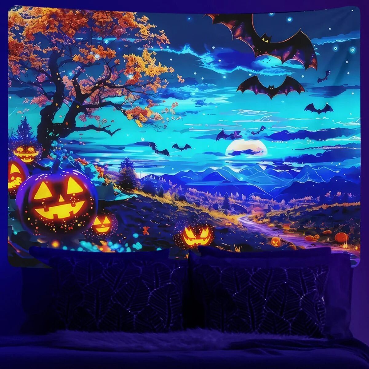 壁掛け タペストリー UV 蓄光 発光 ブラックライト ハロウィン ハロウィーン Happy Halloween カボチャ Pumpkin コウモリ Bat Trick or Treat お菓子 ネオン BAR PUB CLUB パーティー 非日常 体験 ディスプレイ アート Art 輸入雑貨 ギフト インテリア 人気 おしゃれ 日本未発売 限定 ホテル モデルハウス モデルルーム ガレージ ライブハウス スタジオ 秘密基地 隠れ家 贈り物 お祝い バカンス リゾート ホリデー イベント